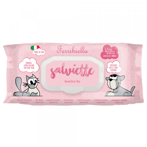 As Toalhitas Húmidas Salviette Sensitive Bio são perfeitas para a higiene diária de cães e gatos, proporcionando uma limpeza suave e eficaz, com um suave perfume. A fórmula extra delicada com aloé vera faz com que sejam indicadas para as zonas mais sensíveis, garantem hidratação, frescura e conforto, sem causar irritações. Ideais para remover sujidade, deixam o pelo sedoso e a pele macia, oferecendo uma sensação de limpeza e frescura imediatas. Fáceis de usar, estas toalhitas são ideais para a limpeza diária em casa, em passeios ou em viagens. Com ação absorvente e refrescante, elas são perfeitas para todos os tipos de pele, promovendo os cuidados diários de higiene do animal de estimação.